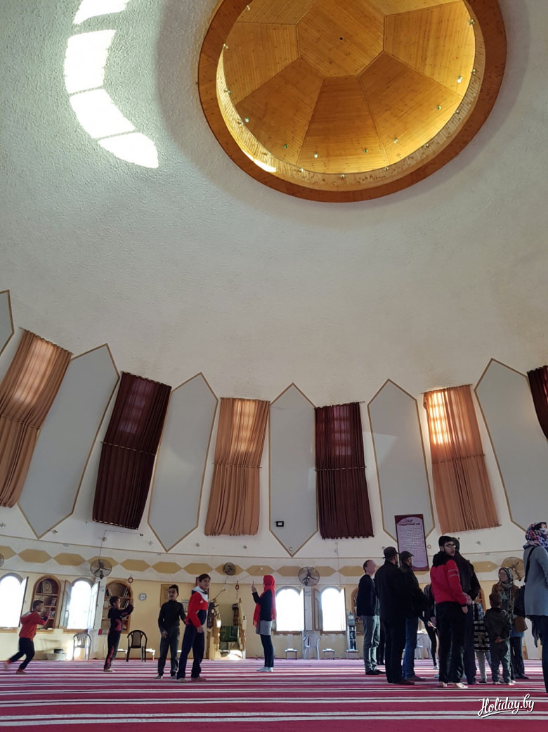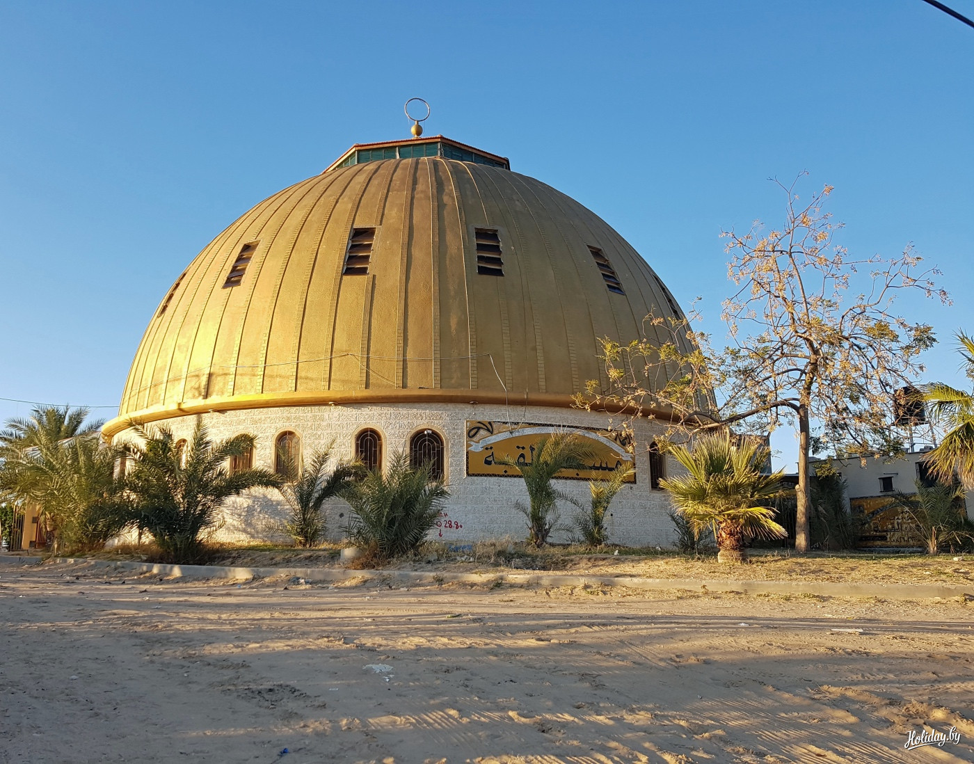 В пяти минутах езды – деревня Аль-Мауасы, где находится необычная по стилю мечеть. Местные называют её Масжид аль-Кубба, т.е. «мечеть купола». Её построили около десяти лет назад в стиле иерусалимского Купола Скалы, с огромным позолоченным куполом, который издалека выделяется среди деревенских хибар. Внутри строение выглядит скромнее, но что меня впечатлило, так это акустика: стою в центре зала и голос разносится, словно говорю в микрофон.