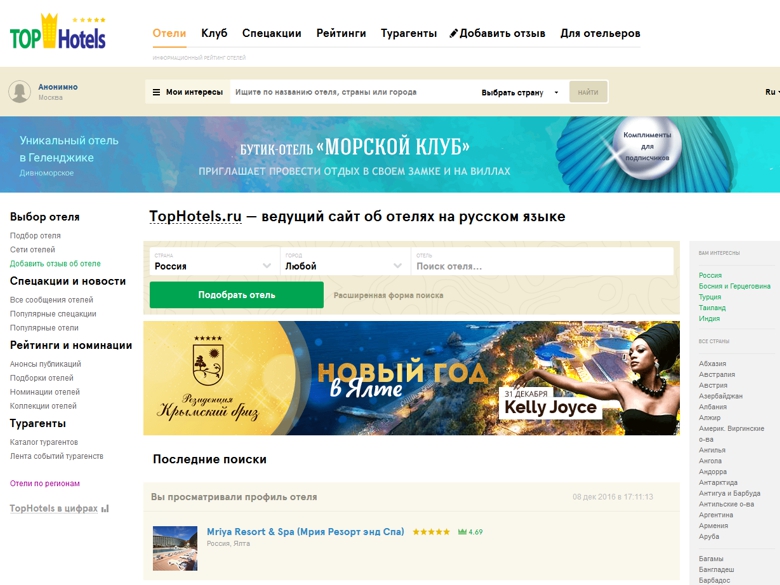 Самый популярный в России и СНГ TopHotels.ru - здесь тысячи отзывов с фотографиями, от жителей русскоговорящих стран. Сюда наши специалисты заходят, когда нужно посмотреть конкретные живые фото туристов. А вот самим отзывам не всегда можно доверять - тут очень много фейковых отзывов, и много отзывов не объективных, сильно эмоциональных. Причем не только положительных, но и отрицательных. Из серии: «Рейс задержали на три часа - отель отстой», «Отель ужасный - всю неделю шел дождь» или «Прекрасный отель, я выхожу замуж за аниматора». Ну вы поняли, да? Из плюсов - можно задать вопрос представителю отеля или автору отзыва. Кстати, на сайте, можно посмотреть, где еще был до этого и как отзывы оставлял автор, чтобы понять, насколько он объективен.
