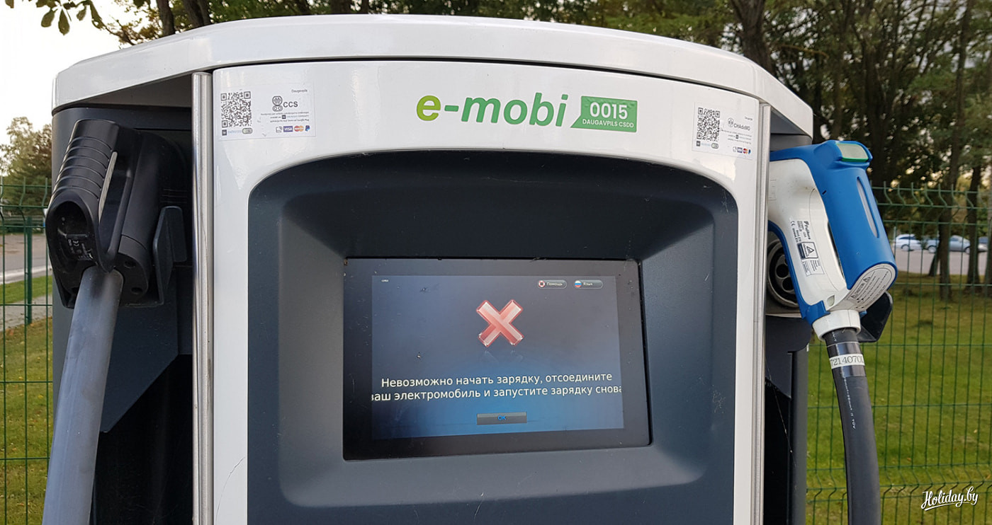 Выехать за границу на электромобиле из Минска - то ещё развлечение. Дело в том, что электрозаправки в РБ за пределами МКАД - всё ещё чудо. И кто же знал, что программное обеспечение автомобильного и заправочного копьютера должно «дружить»? Точнее так, операторы заправок должны следить и регулярно обновлять ПО, чтобы оно не конфликтовало с программной частью автомобиля. В противном случае у вас велик риск словить «глюк» и машина заблокирует себя от будущих заправок, чтобы ситуация не усугубилась. В северном направлении на нашем пути была только зелёная АЗС в Лепеле, где была электрозаправка. Приключения подкрались к нам незаметно! Кто же знал?..