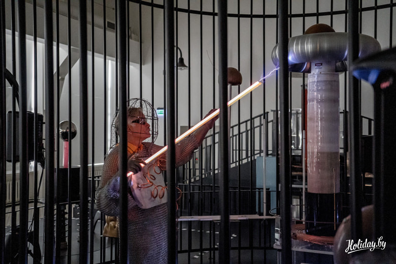 А специально для нас в здании бывшей электростанции устроили внеплановое показательное выступление «укротителя молний» в гигантской клетке Фарадея. Такие уроки являются частью системы экологического образования детей и взрослых.