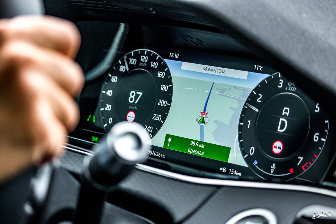 Ни одного раза я не испытал дискофорта или неудобства управления в салоне этого автомобиля за все 3000 километров пути. Это настоящий породистый «Ягуар». Немного нужно было привыкать к отсутствию рычага или «шайбы» переключения передач - здесь управление решено кнопками на центральном тоннеле. Однако через день я уже оперировал этим функционалом вслепую.