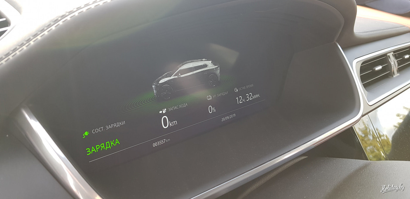 Вожделенная надпись на панели приборов! Время зарядки пугает, так как в течение половины суток «что-то пошло не так» может произойти раза три. Однако к утру батарейка обещала нам увлекательный маршрут прямо до Финляндии.