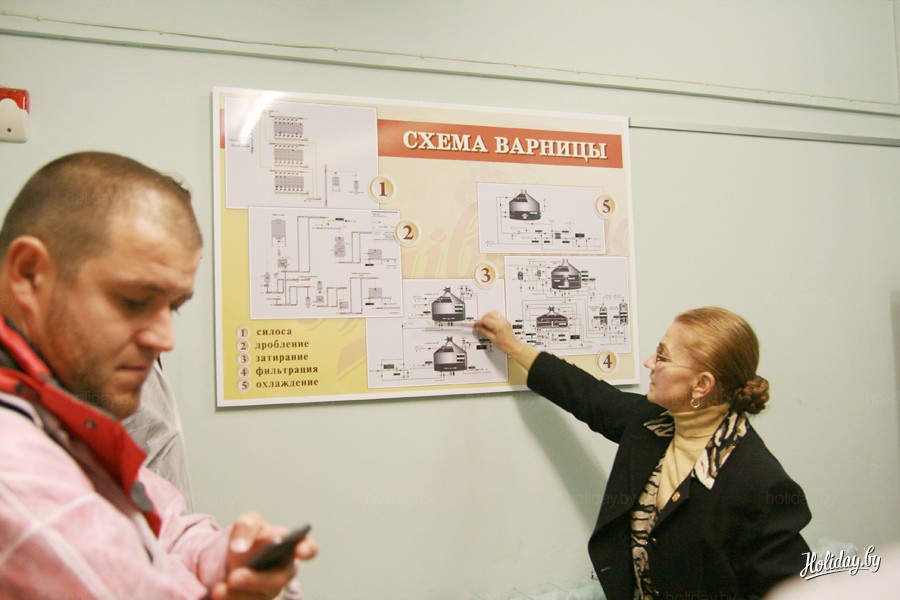 Перед цехом на схеме нам подробно рассказали о технологии производства пива