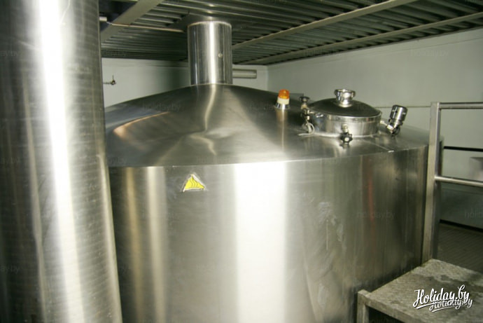 Вот такой он - пивной чан. Кстати, чтобы не разрушать основания старинного здания - все современное оборудование поставлялось на завод через разобранную крышу