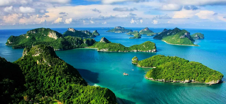 Группа из 42 островов Ангтонг признана национальным заповедником в 1980 году. С тайского языка ее название переводится как «Золотая чаша». О ней никто не знал, пока один из островов архипелага не стал главным героем книги американского писателя Алекса Гарленда «Пляж».