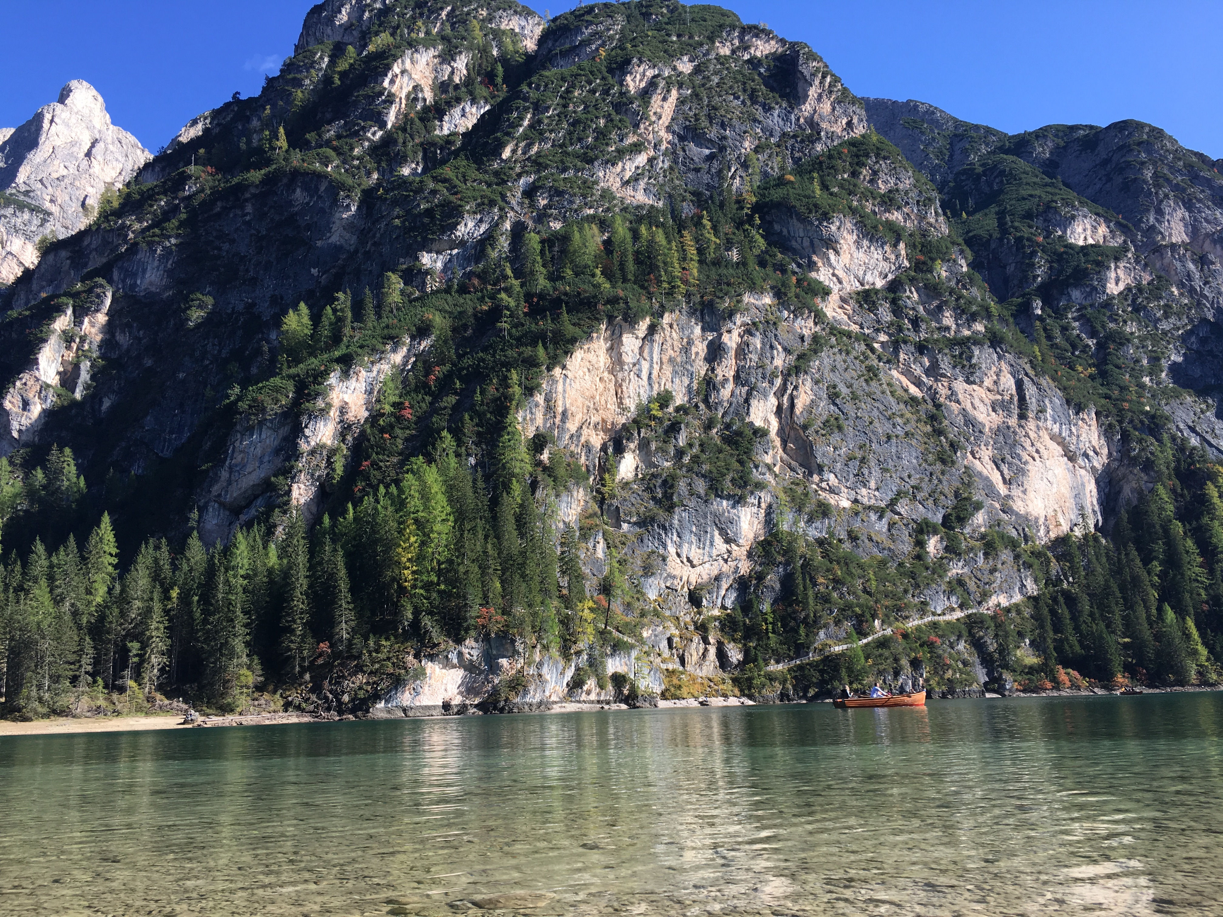 Не покривлю душой, если скажу: озеро Брайес в Доломитовых Альпах – самое красивое, спокойное и чарующее место, где я бывала. Его чаша образовалась несколько десятков тысяч лет назад в результате деятельности ледника, который буквально “выпахал” камни и образовал таким образом удивительное озеро.