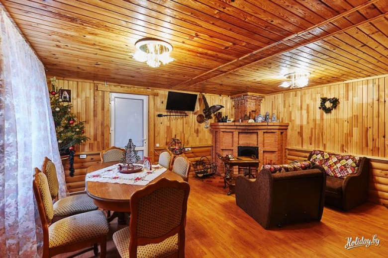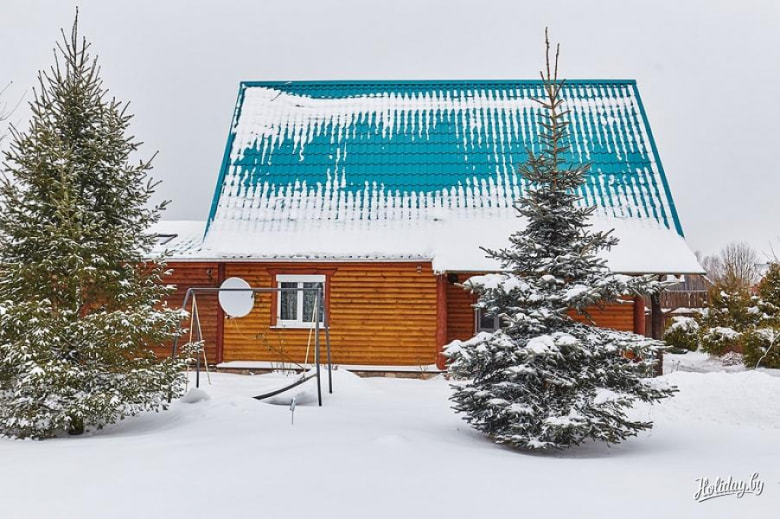 Что-то из детства, душевное и простое. Деревянный домик в лесу, снег, ёлка во дворе, печка, банька. Только уже за 1600 BYN на 10 человек.