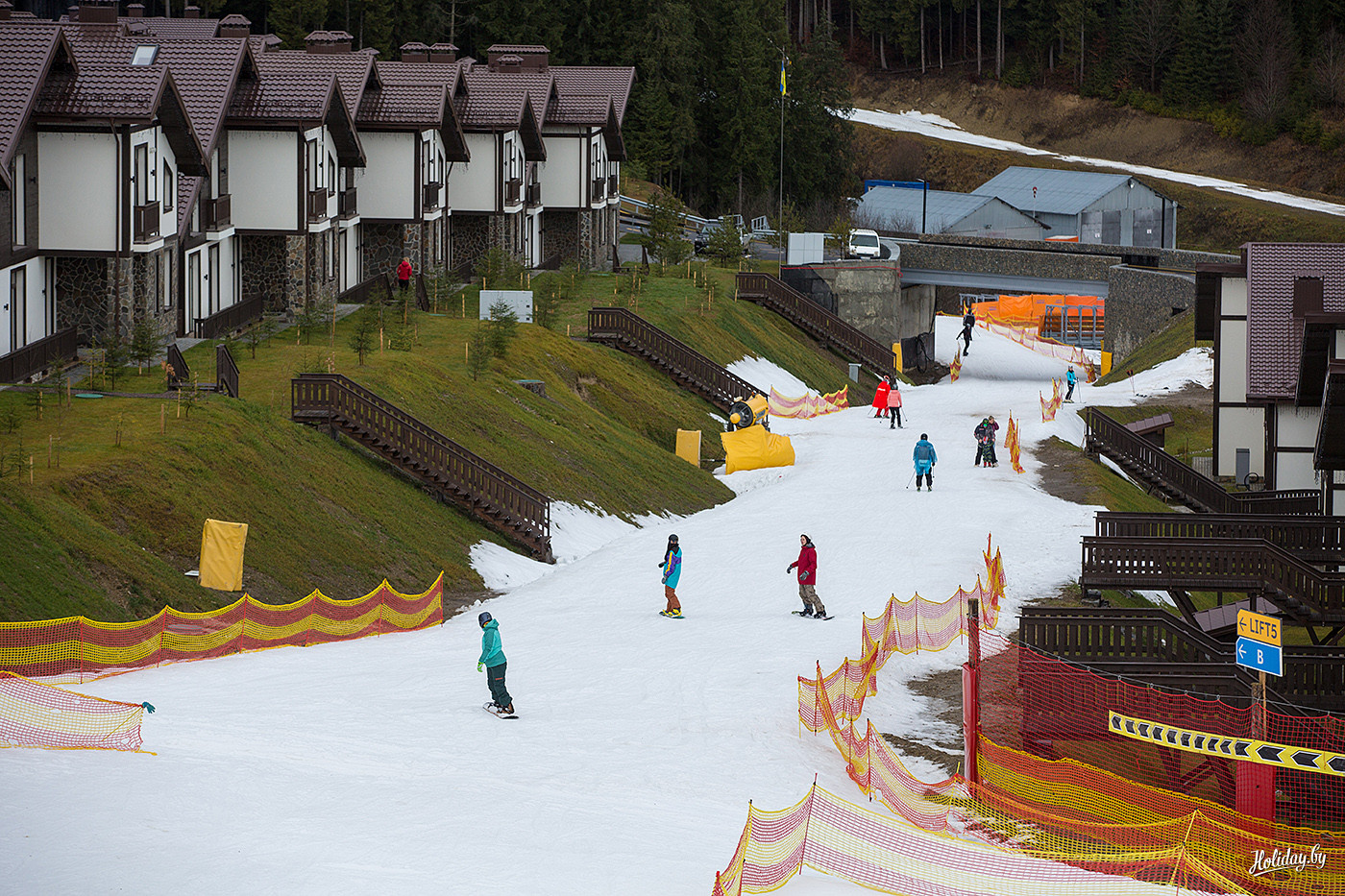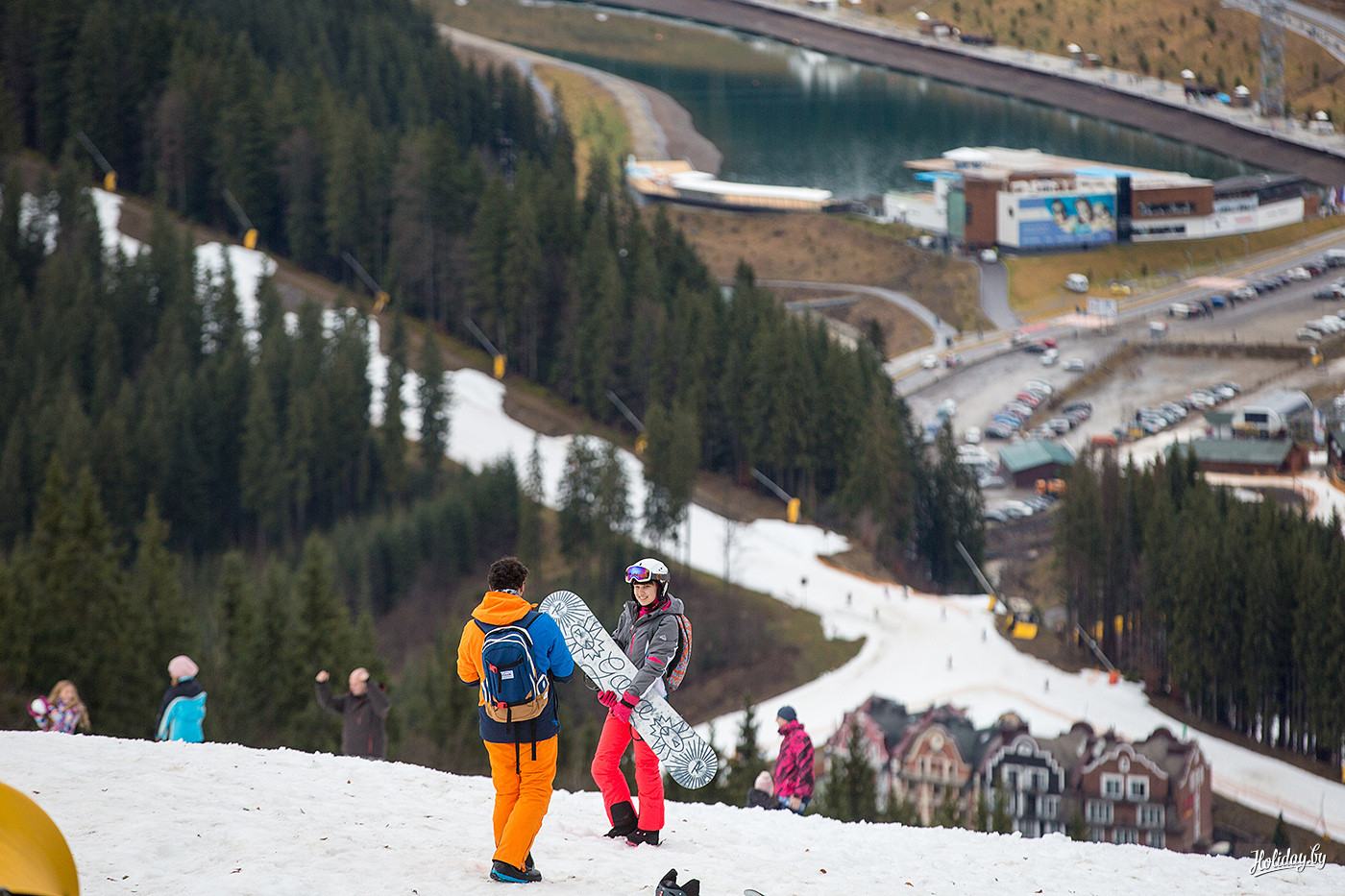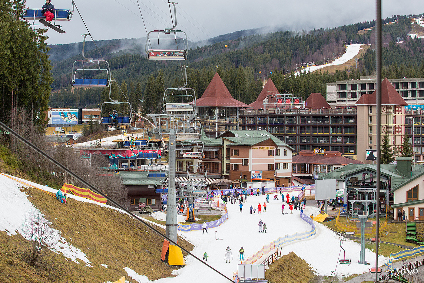 При этом, нигде нет толпы и очередей — сами украинцы, которые любят отдыхать в Буковеле, предпочли перенести каникулы до снежных времён. Белорусам такой формат отдыха даже нравится: впервые в истории десятилетия за шесть дней до Нового года на подъёмник можно сесть приблизительно за пять минут. А учитывая, что многие едут в Буковель, чтобы попробовать стать на лыжи в первый раз, такой расклад (со свободными трассами и отсутствием экстремальных профессиональных гонщиков на спусках) — и вовсе идеален.