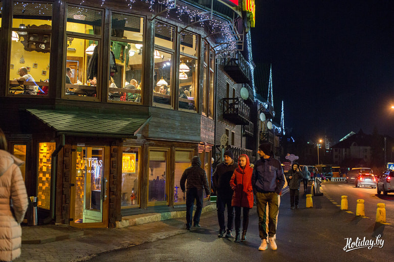 По вечерам в центре курорта — обязательно ёлка и ярмарка: выступают местные певицы, на вертеле жарят кабанчика, разливают перцовку.