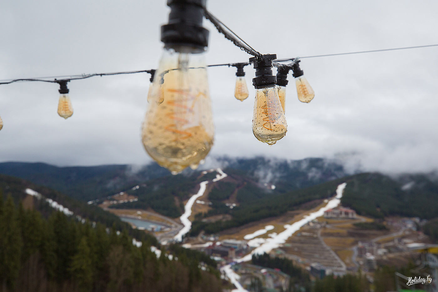 Легкий морозец, кристальный горный воздух. Из труб идет дымок — сказочная зимняя пастораль. Праздничная иллюминация, радостные люди распивают глинтвейн. И главное, чтобы ещё пар поднимался над кружкой. А сверху желательно чтобы снежинки падали. Приблизительно так должен был выглядеть этот предпраздничный фоторепортаж из Западной Украины. Но реальность всегда интереснее. Мы приехали в Буковель в начале зимнего сезона, чтобы воочию увидеть горнолыжную сказку-2020 за неделю до Нового года. И попали под дождь.