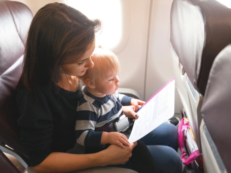 Наклейки, раскраски, маленькие игрушки, головоломки по возрасту, книжки - все, чтобы развлечь ребёнка в полёте