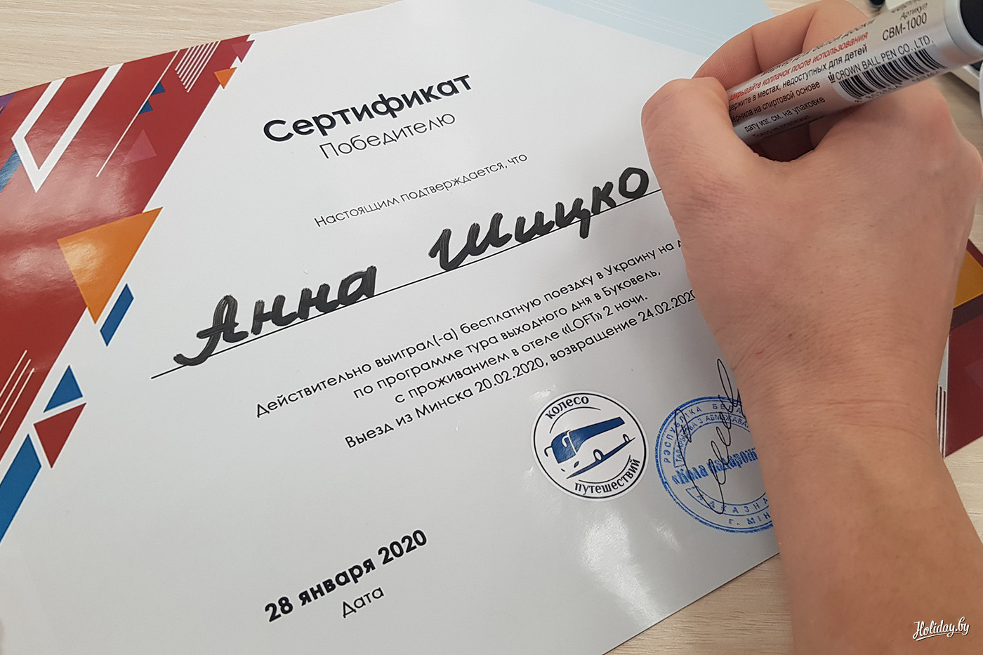 Ура. Уже сегодня, 29 января 2020 года, сертификат нашёл своего владельца в офисе компании "Колесо путешествий". Ещё раз поздравляем победительницу!