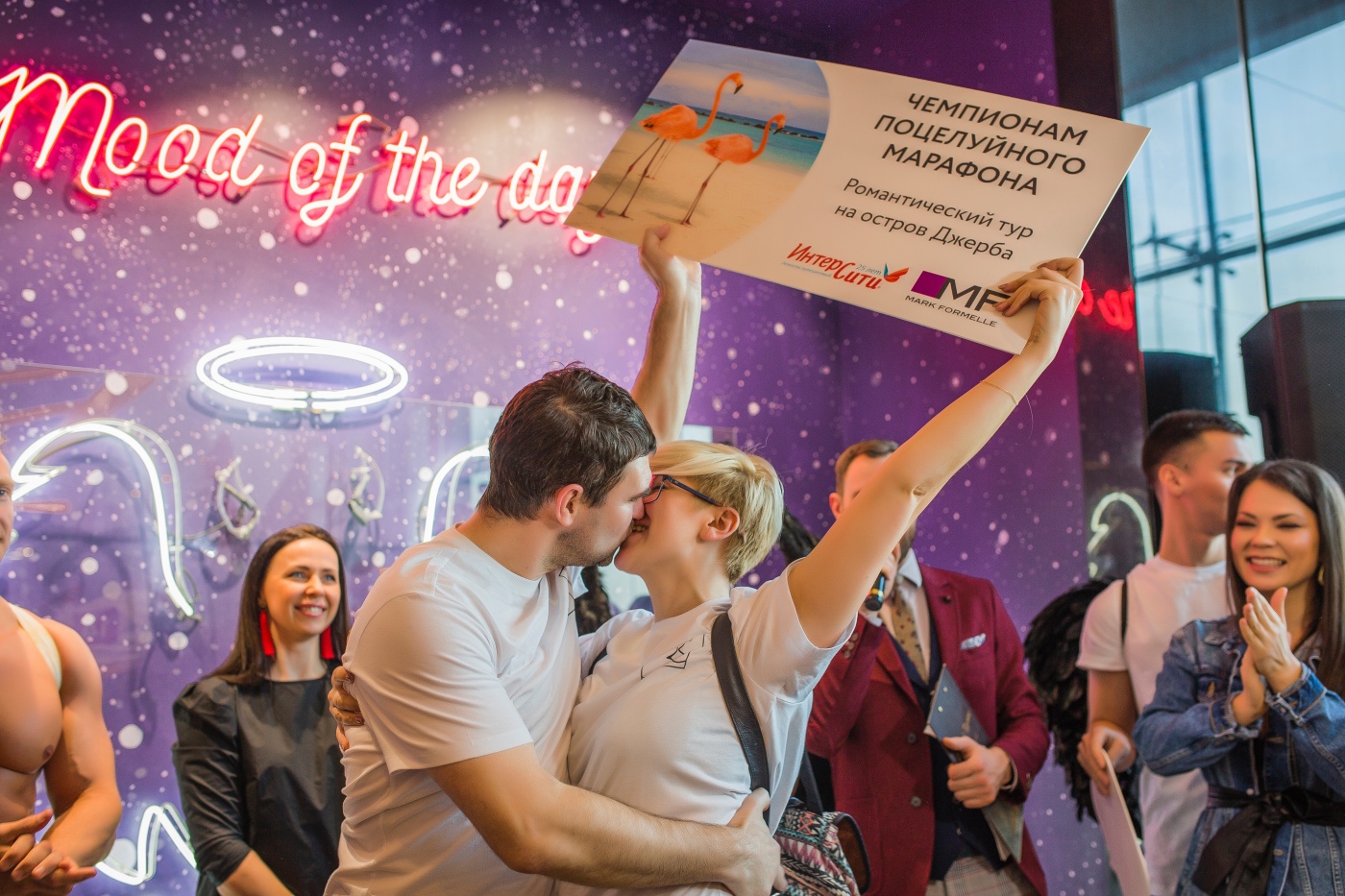 Победу в марафоне одержали Татьяна и Дмитрий Зеленьковы — супружеская пара из Минска, которая уже 17 лет вместе. В их семье трое детей, и как писала в заявке на участие сама Татьяна: “Дома времени на поцелуи нет”. Муж Татьяны до последнего не знал, в каком мероприятии ему предстоит поучаствовать. Однако к удивлению самой пары именно они одержали победу. В качестве подарка пара получила 10-дневное романтическое путешествие на остров Джерба.