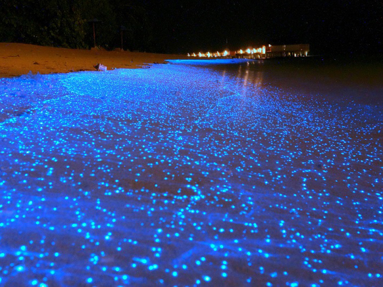 2 место: Светящиеся пляжи, Мальдивы. Какая девушка откажется от предложения на берегу светящегося пляжа. Это место поистине незабываемое и необычно.