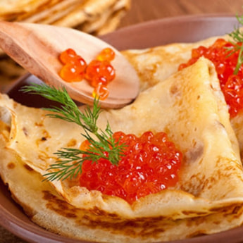 | Блины с творогом, вареньем или медом удовлетворят ваше желание. А может соленого? Тогда с икрой, рыбой, курицей или шкварочками! Ммм… |