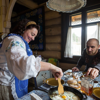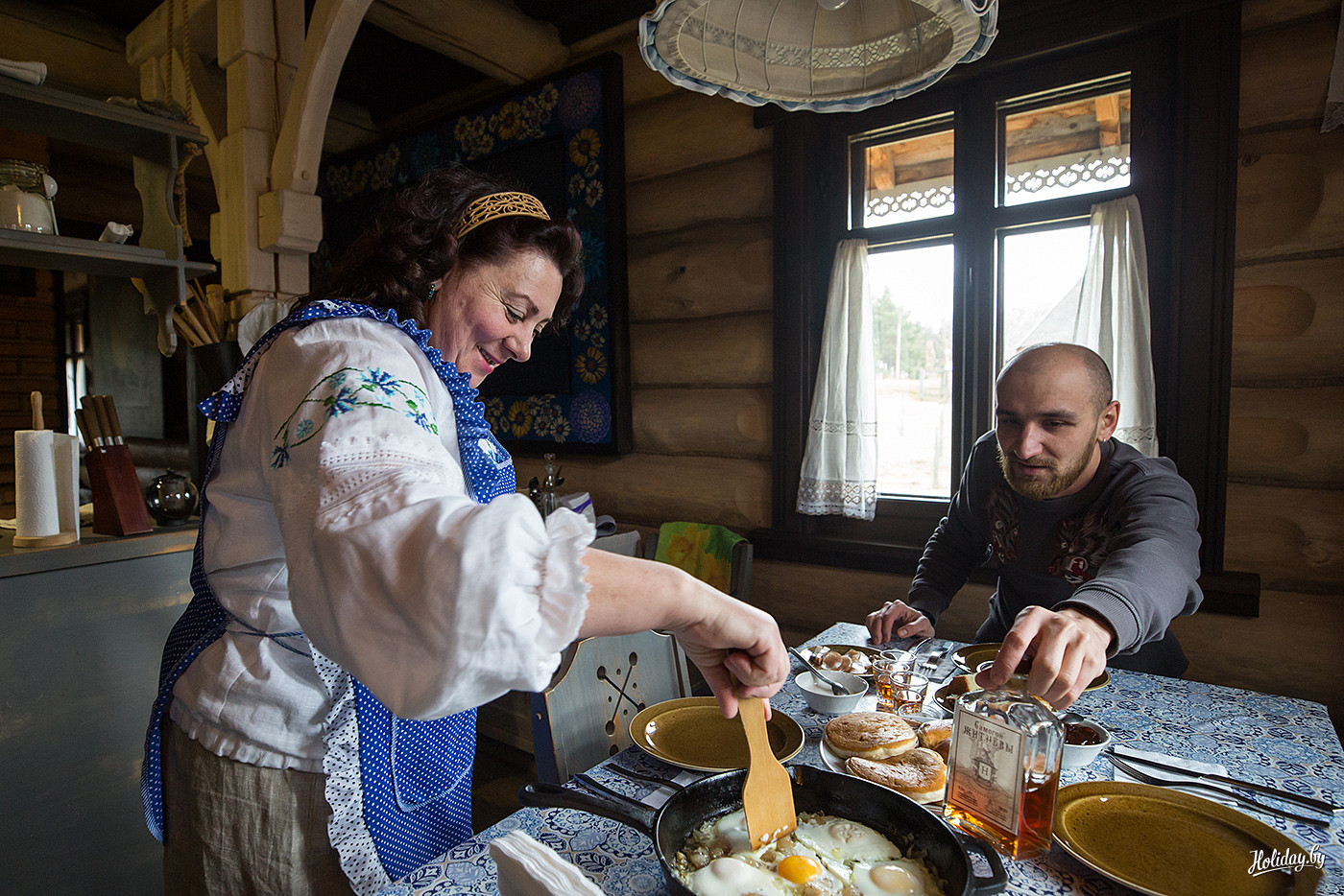 Можно подумать, что мы преувеличиваем. Но нет. Более того: многие гости специально просят, чтобы Вера Павловна начинала готовить завтрак, пока они ещё лежат в постелях. Людям нравится, когда за стеной стучит заслонка печи, льется вода, а через какое-то время начинает вкусно пахнуть — хозяйка жарит блины.
