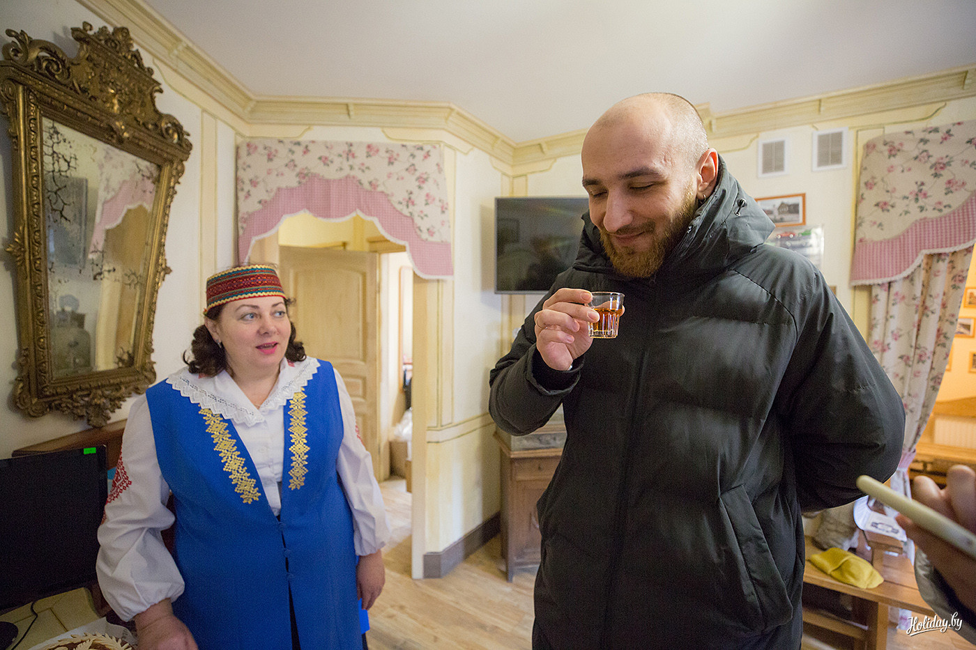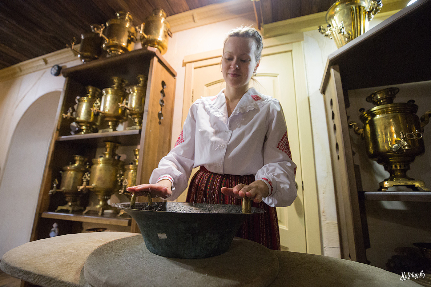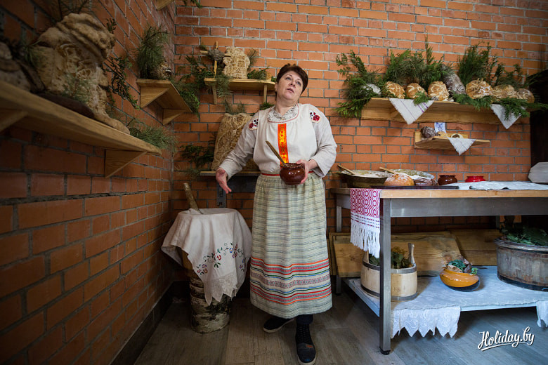 Экскурсия начинается с порога. Это небольшой спектакль. Гостя встречают шумно: в красивых народных костюмах и с прибаутками.