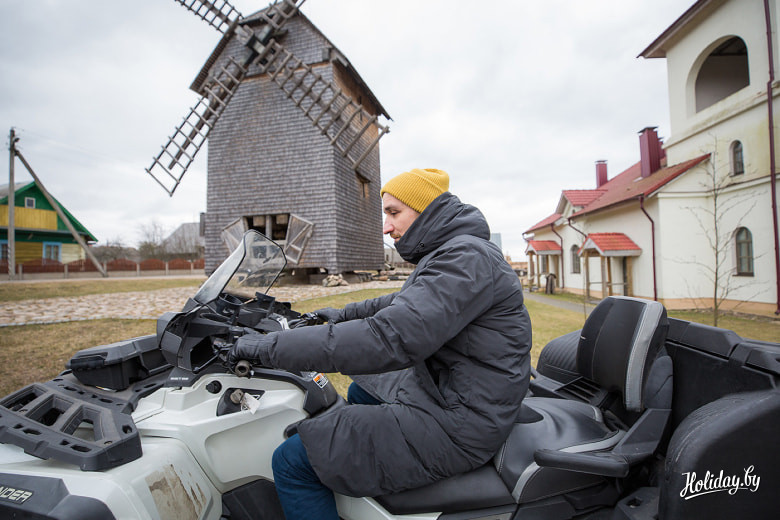 Обед. Перевели дух. И опять на улицу. За пол дня мы не посмотрели даже половину местной инфраструктуры. Следующие три часа катаемся на карете, квадроциклах, смотрим восстановленные мельницы, одна из которых является обзорной площадкой.