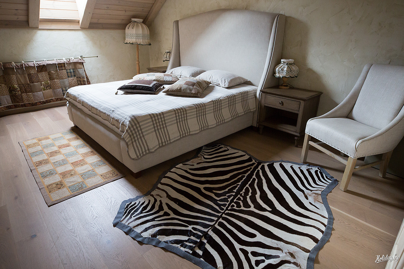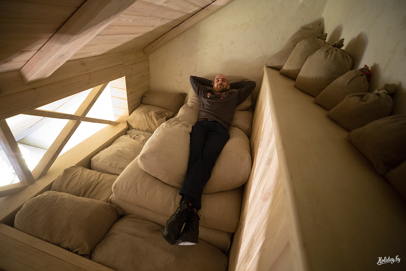Переночевать можно на втором этаже. Там обустроены апартаменты в стилистике «прованс». В одной из комнат есть чердак-сеновал.