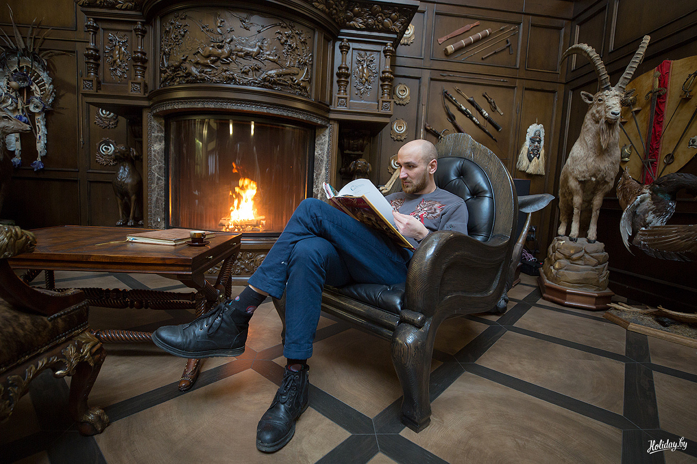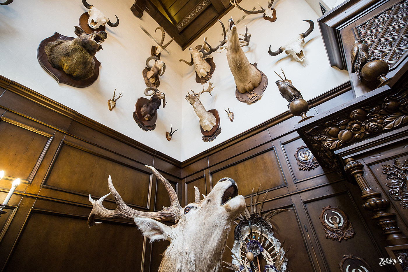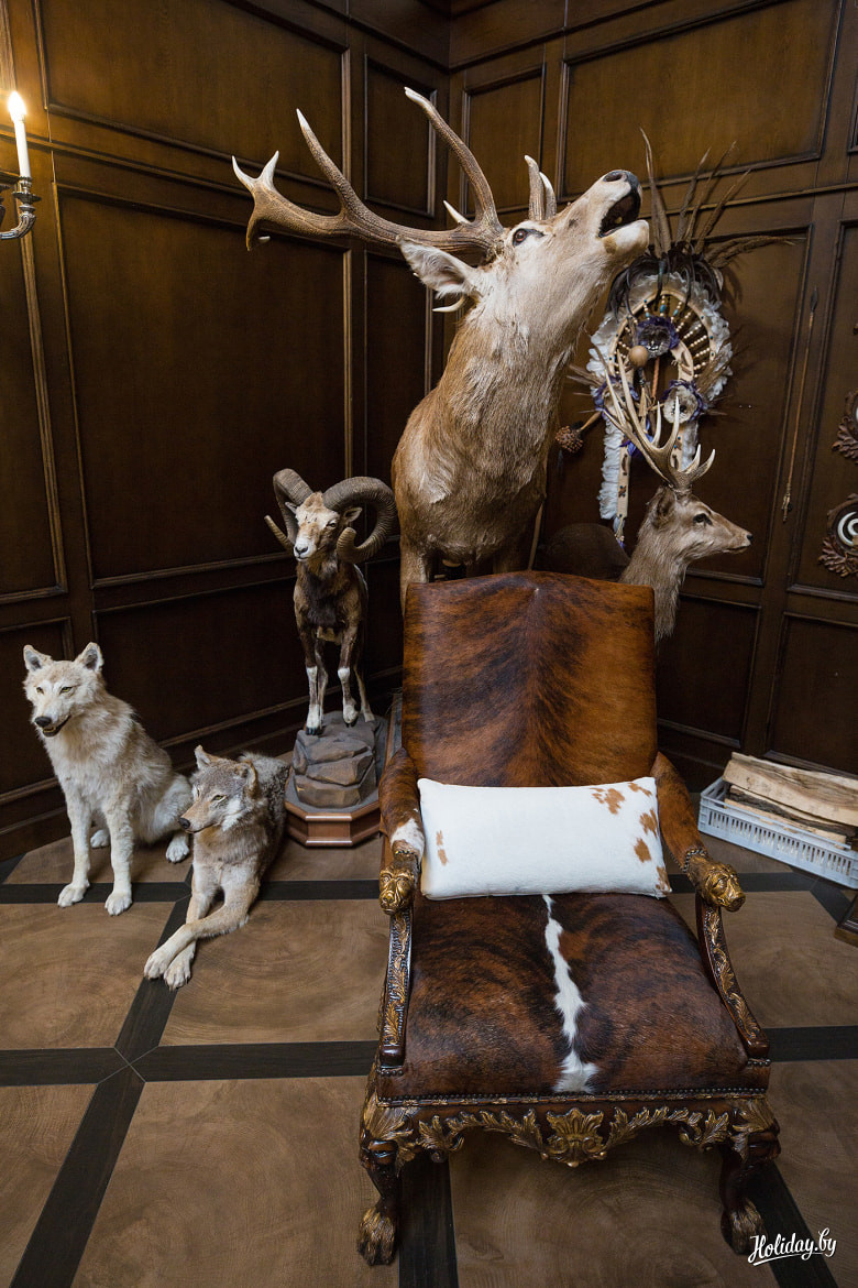 — Вы думаете те, кто владел белорусскими деревнями, бедно существовали? Считайте это репродукцией. Все трофеи реальные. А вот эти волчиц хозяин приручил, они жили в «Наносах».