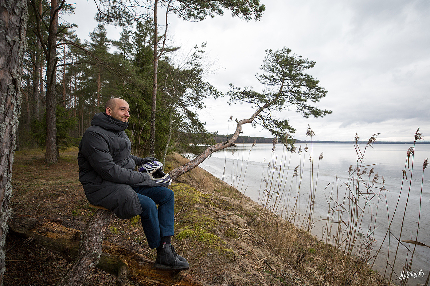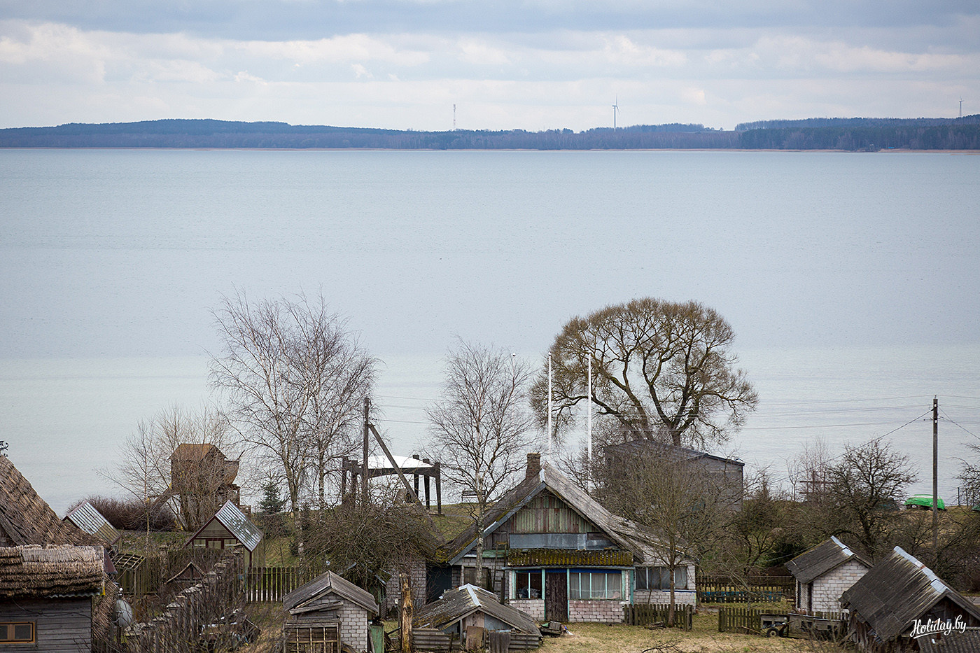 Яхт-клуб закрыт на зимовку, но виды на Нарочь медитативные. Легко представить, как всё выглядит в сезон.