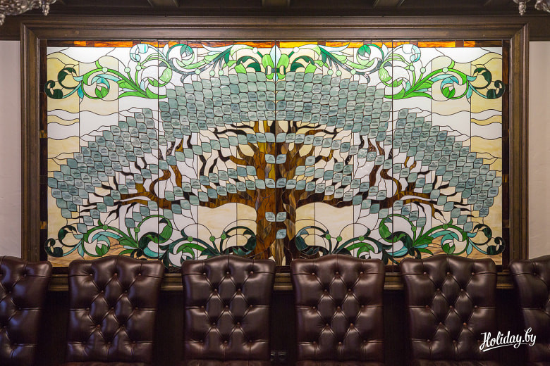 Чем здесь заняться обычному туристу? Не знаем. Можно, открыв рот, созерцать два масштабных генеалогических древа отца и матери бизнесмена Евгения Новоселецкого. Или рассматривать его семейные фотки на стенах. Или слушать рассказы управляющего про то, что вот эта люстра стоит сорок тысяч евро, а выделка одного чучела — от пяти тысяч евро.