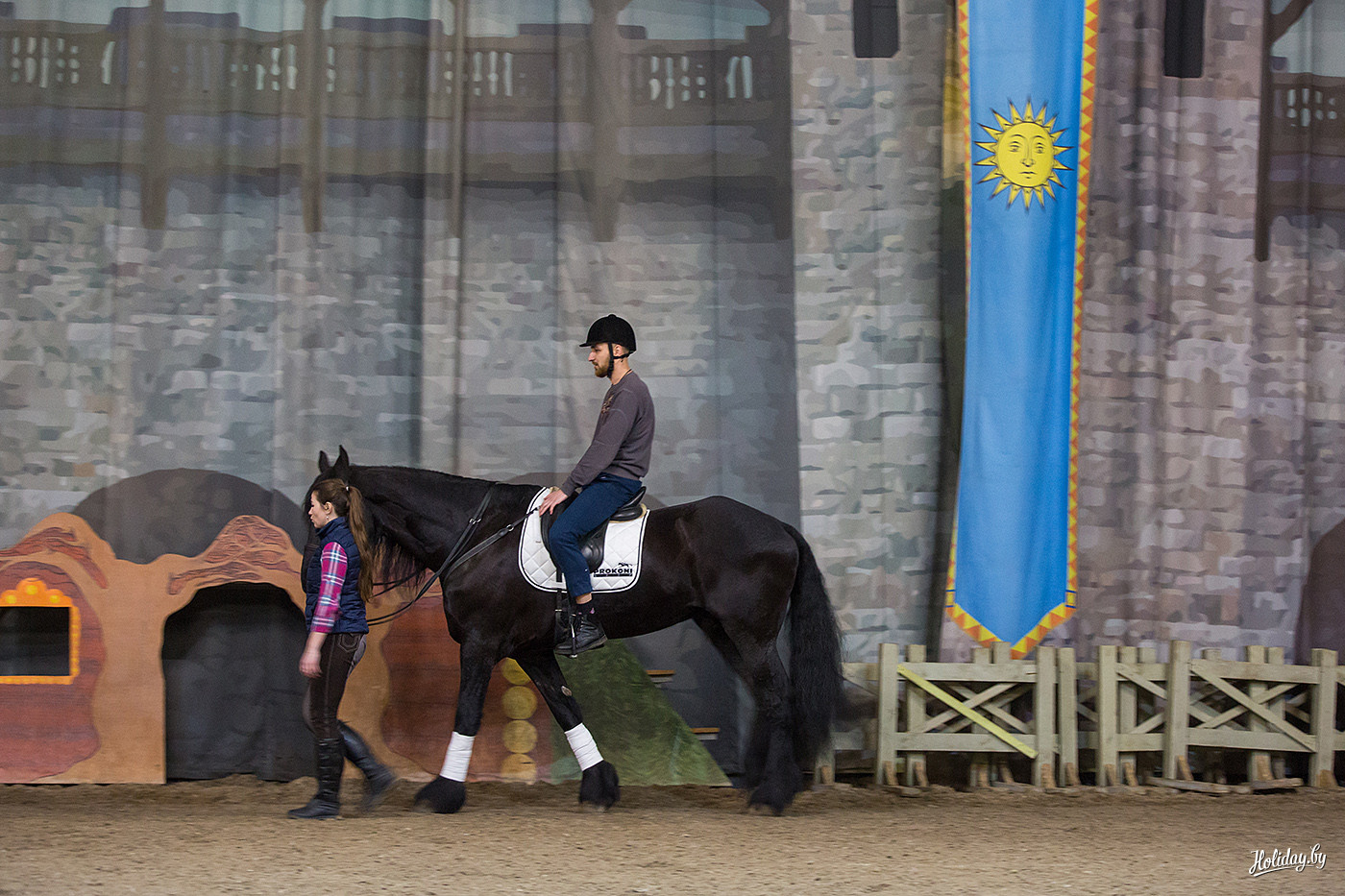 Мастер-класс по обучению верховой езде длится сорок пять минут. Он проходит внутри конюшни, которая больше напоминает средневековый рыцарский зал для турниров.