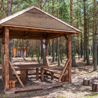 Можно снять беседку закрытого типа с очагом. Стоимость — 10 BYN с человека (с 14.00 до 22.00)