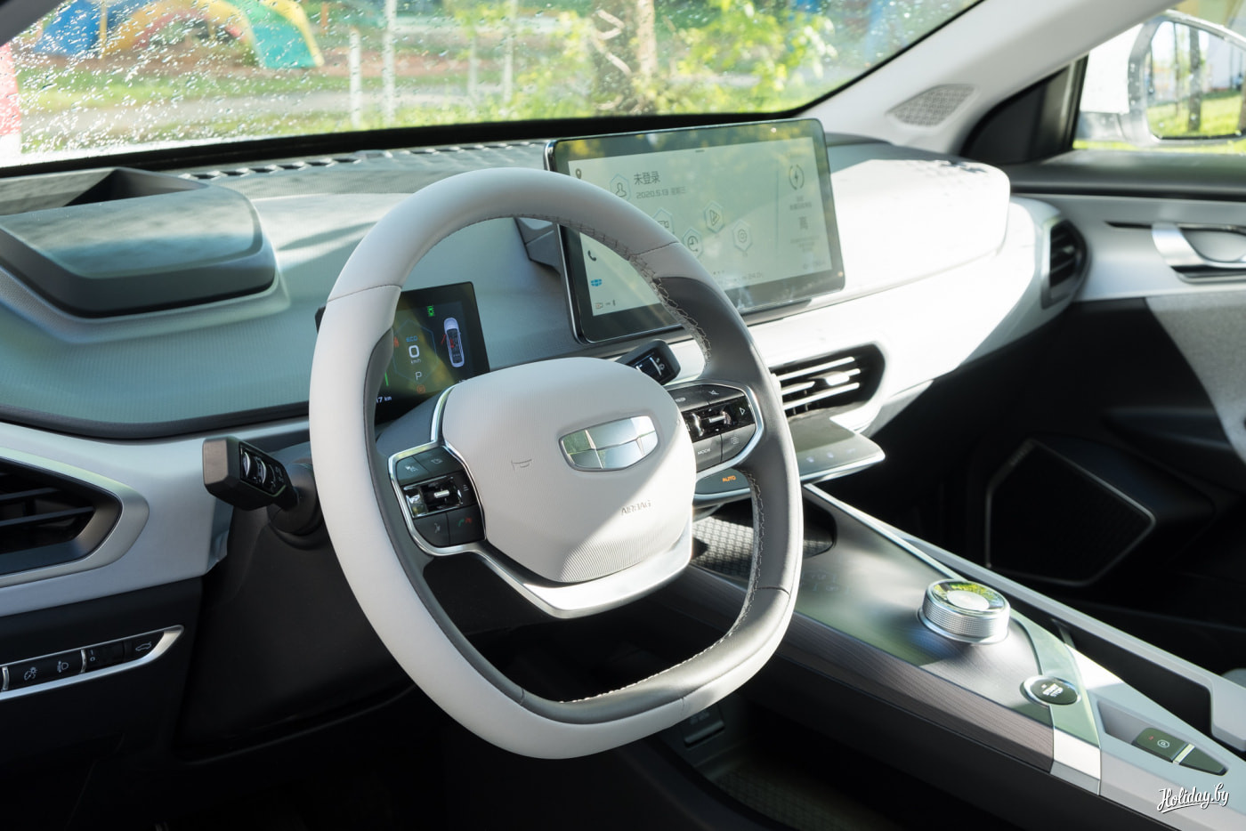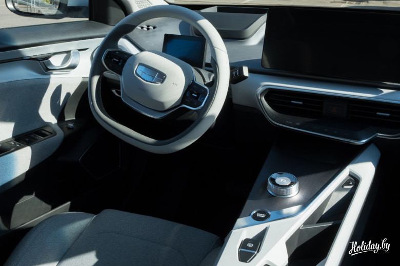 А пока что я пригнал под подъезд "хрущёвки" Geely Geometry A - так в отдельно взятом дворе наступило далёкое будущее. Эксклюзивным этот автомобиль можно назвать по причине того, что таких в Беларуси всего четыре, и продавать их не планируется. Электрокары из Поднебесной у нас для того, чтобы изучить спрос на такого рода автомобили. И если он будет отчётливо заметен, "Геометрия А" может начать производиться под Минском. Но это в будущем. А в настоящем имеем автомобиль, любезно предоставленный Luxury Motors+ на Орловке, оснащённый батареей 51,9 кВтч и, как оказалось, не в самой богатой комплектации.