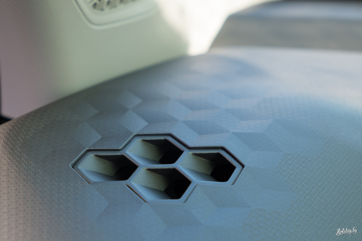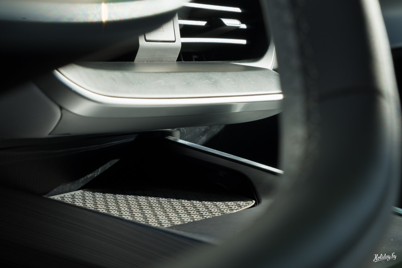 Я не могу про это не написать. Каким-то каноном установлено, что стоит пощупать пластик передней панели и сказать, твёрдый он или мягкий. Так вот пластик в Geely Geometry A есть (он может быть даже вторичной переработки), но забавно под пальцами ощутить было такие 3D-соты около воздуховодов под стойками лобового стекла. Они объёмные. Я не знаю, насколько это говорит о машине в целом, но то, что китайские дизайнеры уже заморачиваются - это факт. Плюсик за это.