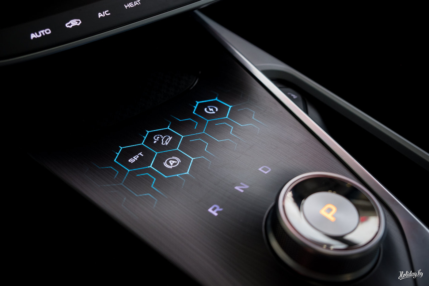 Самая крутая штука в "Геометрии" - это "шайба" переключения режимов движения. Во-первых, это самый часто используемый механизм при управлении авто, и он не может быть унылым. С этим в Geometry A всё в порядке. Во-вторых, рядом с ним выше есть сенсорная панель, проявляющаяся прямо на тоннеле. Именно она добавляет футуризма во всё происходящее с водителем.
