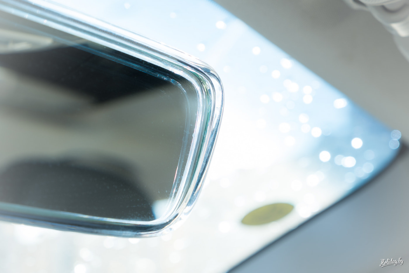 Первое, что бросается в глаза, в буквальном смысле слова - это "безрамочное", а точнее какое-то очень стильное, в прозрачной оправе, зеркало заднего вида. В нём нет никакой камеры, никаких дополнительных функций. Просто лёгкий по восприятию аксессуар.