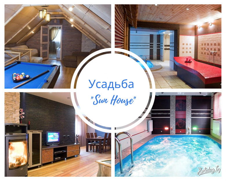 Шикарный коттедж находится совсем рядом с Минском. Гости могут отдохнуть в сауне, где есть бассейн и купель, а на прилегающей к ней территории — шезлонги. Также обязательно стоит обратить внимание на этот дом, если вам предстоит торжество или банкет.