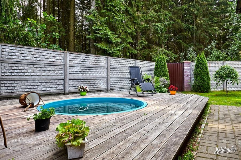 В 20 мин езды от Минска в сосновом лесу расположилась усадьба "Домики в лесу". Это настоящее воплощение истинного загородного отдыха. На территории находится 2 дома. Гостевой дом рассчитан на 2-3 человека. Это идеальное решение для двоих. Разместиться семьёй или компаний до 6 человек можно в большом доме с баней. Вся территория засажена мягким газоном, можно босиком гулять, играть в бадминтон, прыгать на батуте, безусловно, пожарить шашлычок на мангале, понежиться на солнце на террасе, охладиться в бассейне. Интерьер в домиках выполнен в деревянном национальном стиле, что очень воодушевляет. Когда вы достаточно отдохнули в усадьбе, можно потом отправиться на прогулку в лес, недалеко от дома находится озеро, где можно порыбачить и поплавать.