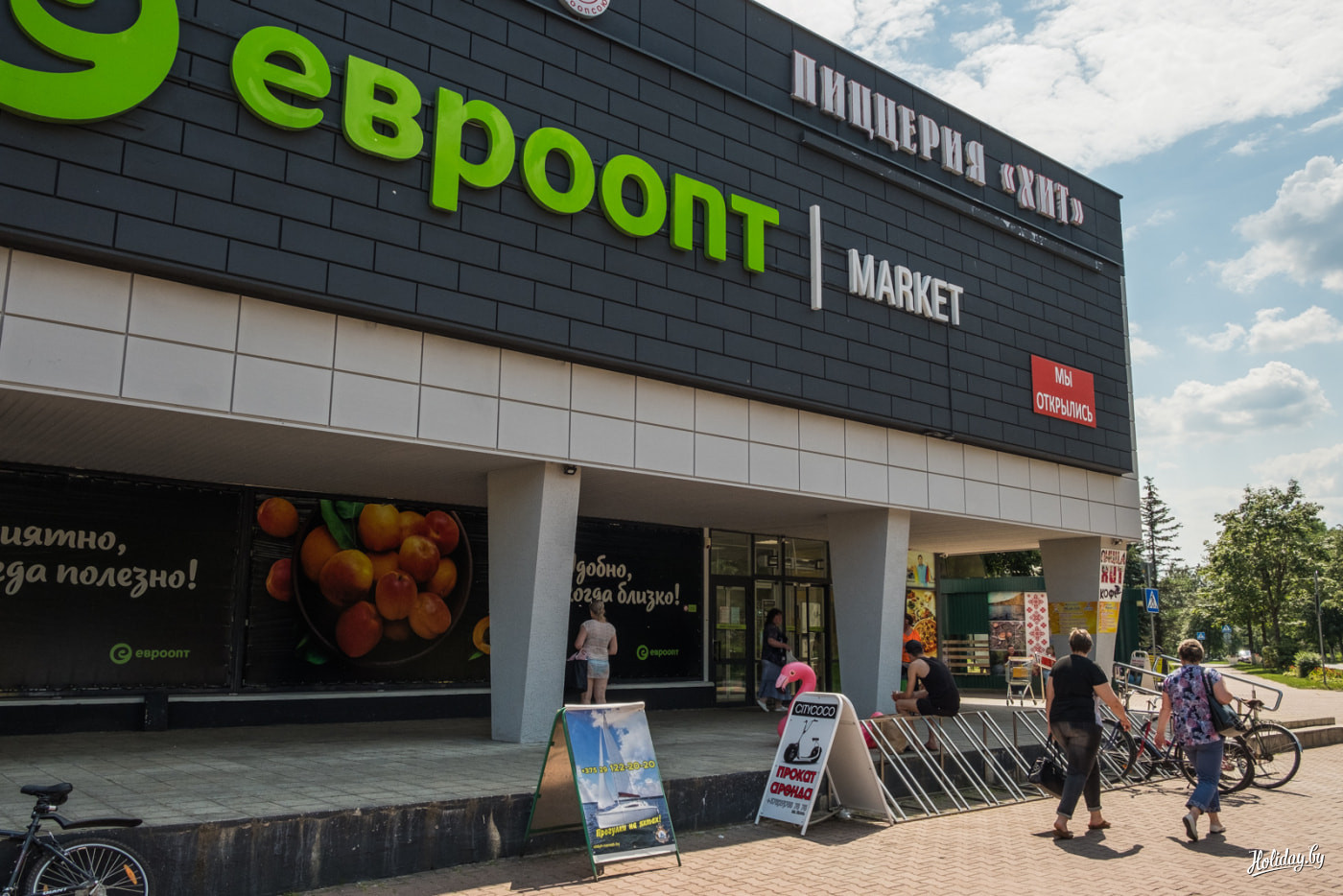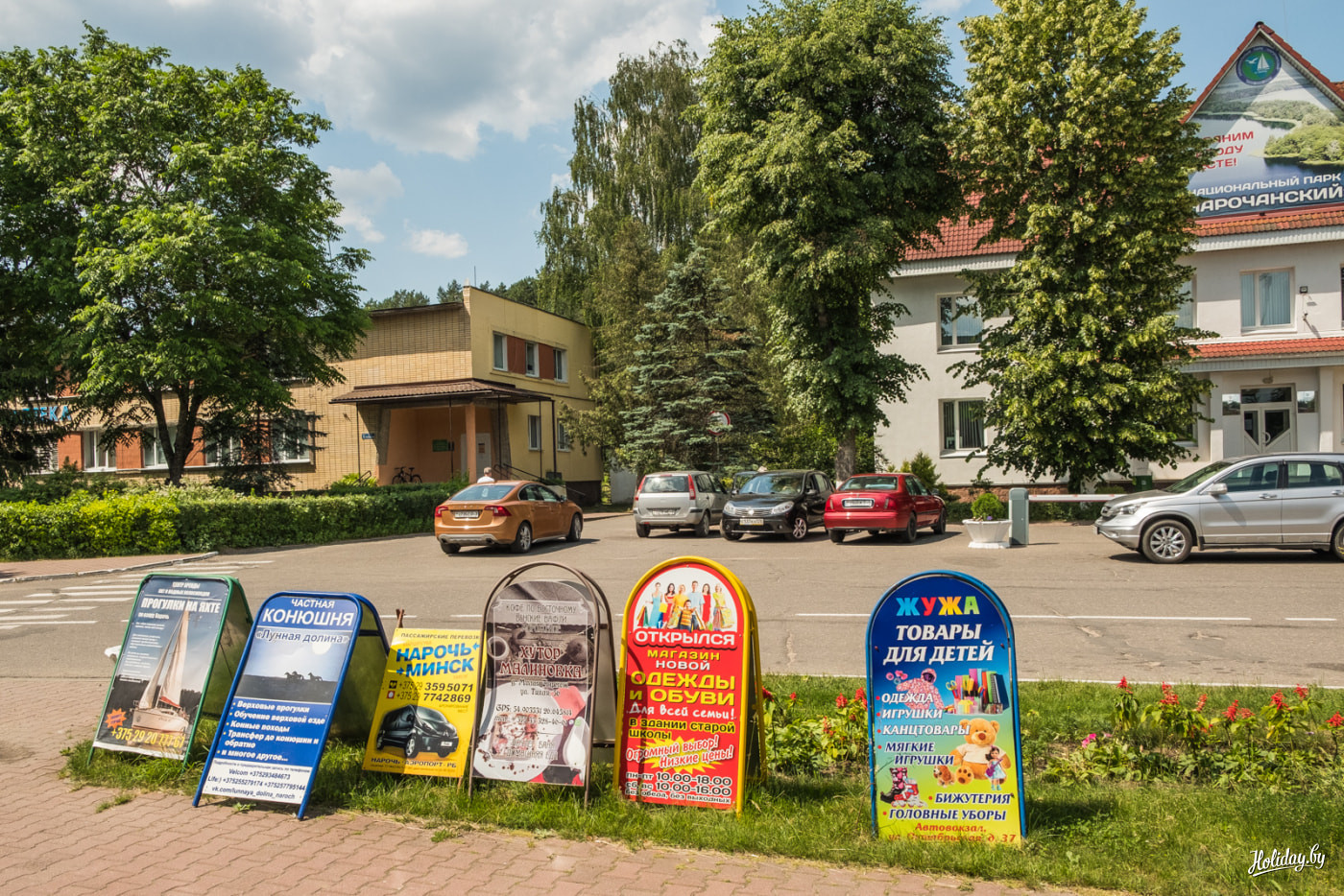 Нарочанский «Евроопт» (Ленинская улица, 10) с недавнего времени стал главной торговой точкой курорта. Большой супермаркет известной сети прямо в центре курорта.