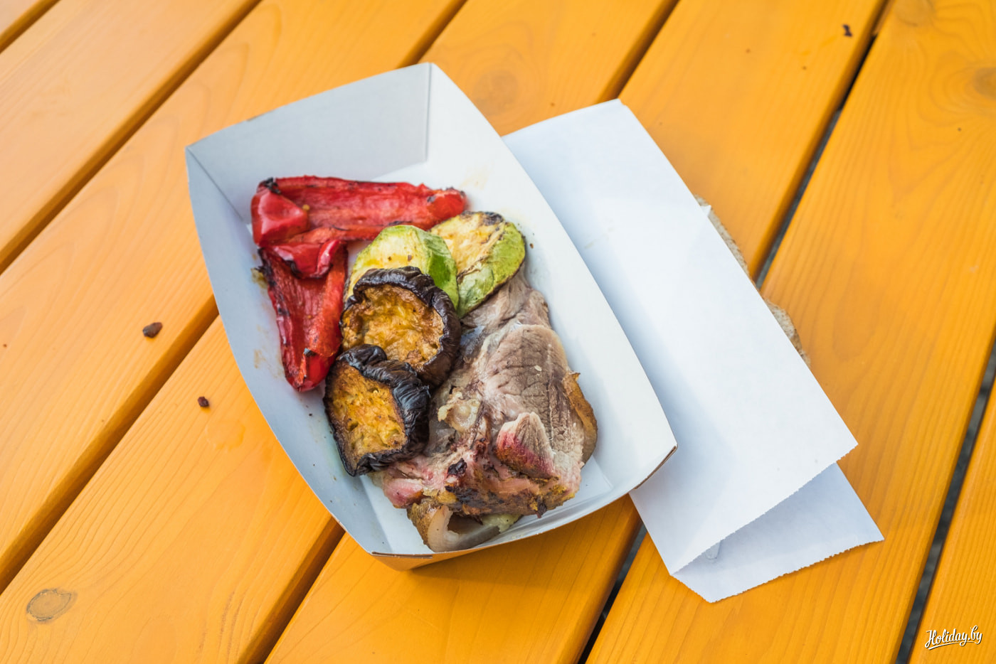 Вторым обедом остался доволен, отдал за кусок рульки с овощами на гриле 5,88 BYN (примерно 2,5 USD). Есть на точке и приготовленное заранее мясо, но я люблю свежее, поэтому рекомендую узнавать, когда такое будет готово и подходить ко времени.