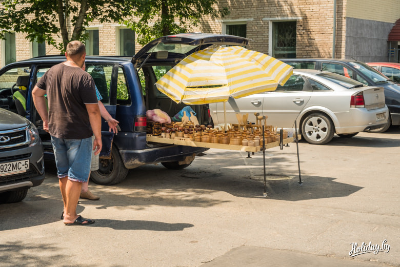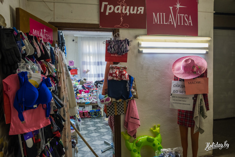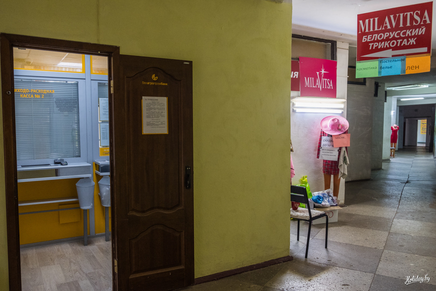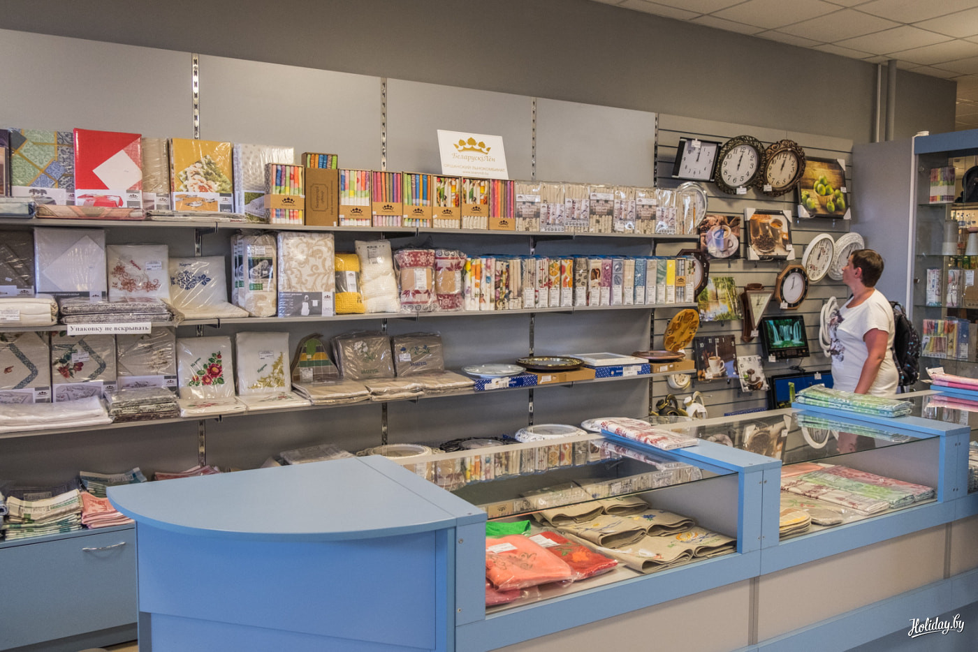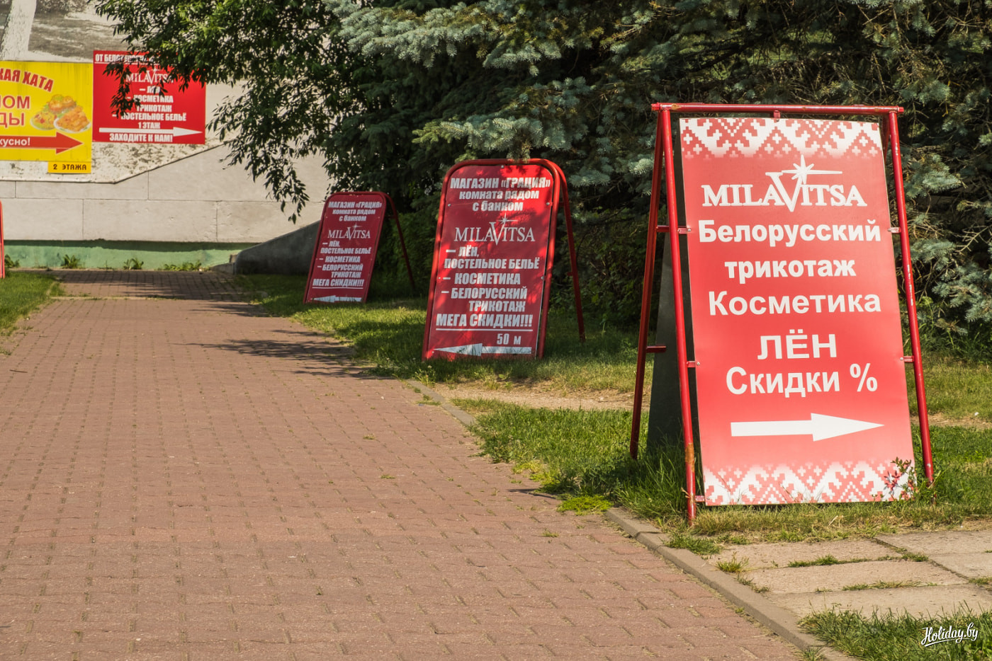 Немногочисленные туристы присматривались к настенным часам и полотенцам с неаккуратно вышитым словом «Нарочь». Ностальгирующим по СССР или тем, кому развал с белорусским трикотажем претит – идём сюда.