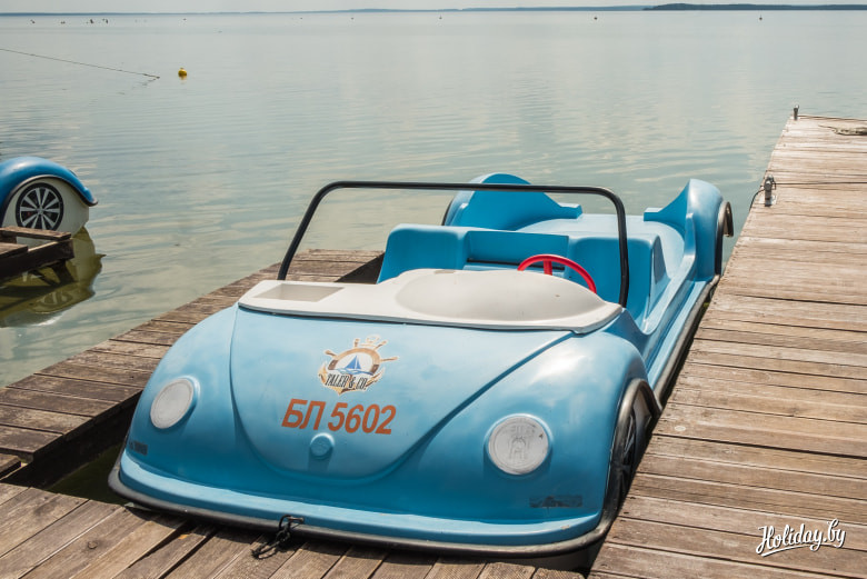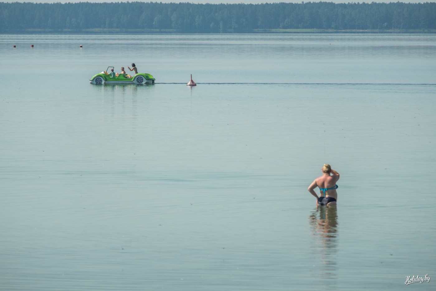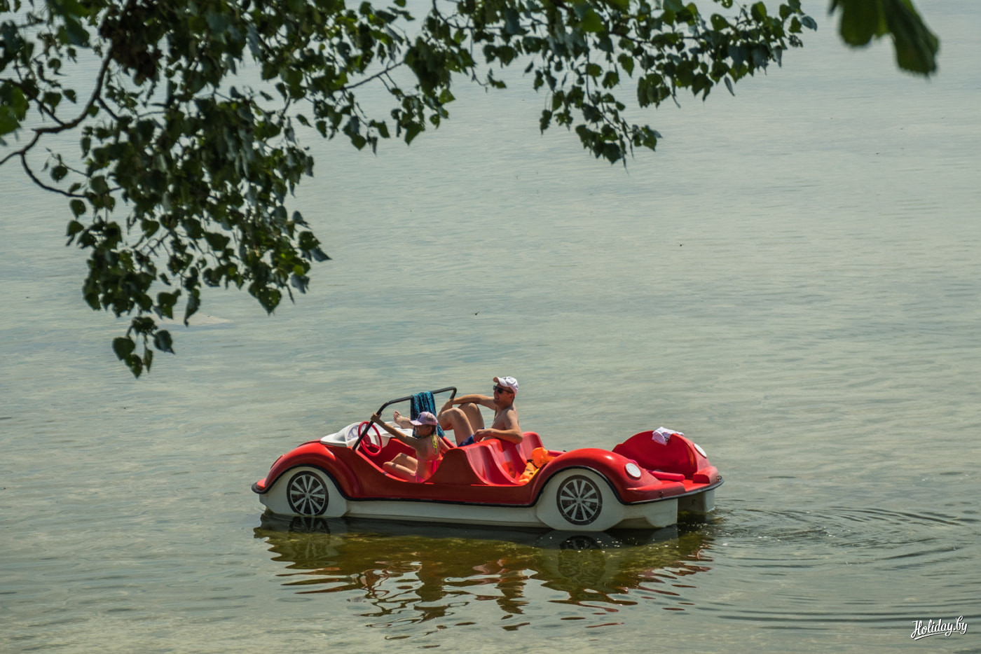 На часик можно снять катамаран за 10 BYN (около 4 USD) и использовать его как для прогулки по озеру, так и в качестве персонального понтона для купания подальше от берега с лебедями с их церкариями. Видел оба варианта – люди довольны.