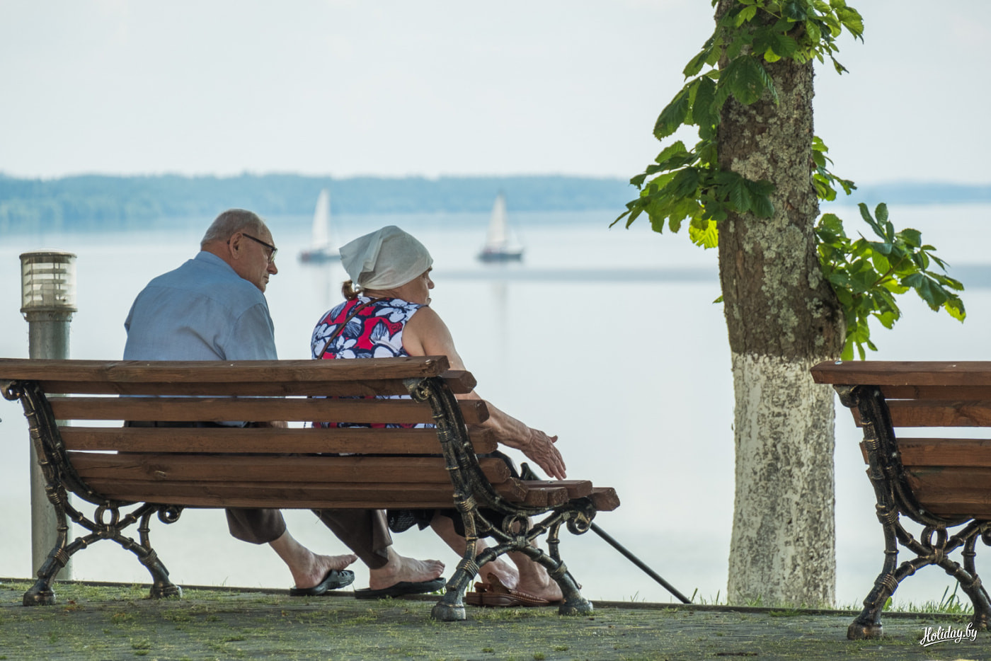 Поэтому найти для себя лавочку с живописным видом не было проблемы. Сидя на лавочке можно понаблюдать за яхтами на водной глади Нарочи, лодками рыбаков или послушать свежий хит Евдокимова «Фантазёр» 1990 года, доносящийся с соседней дискотеки «Для тех, кому за…».