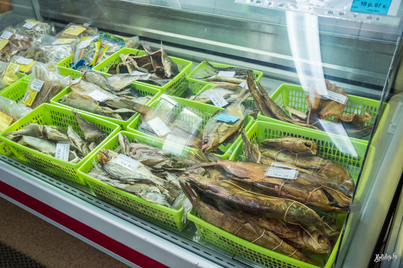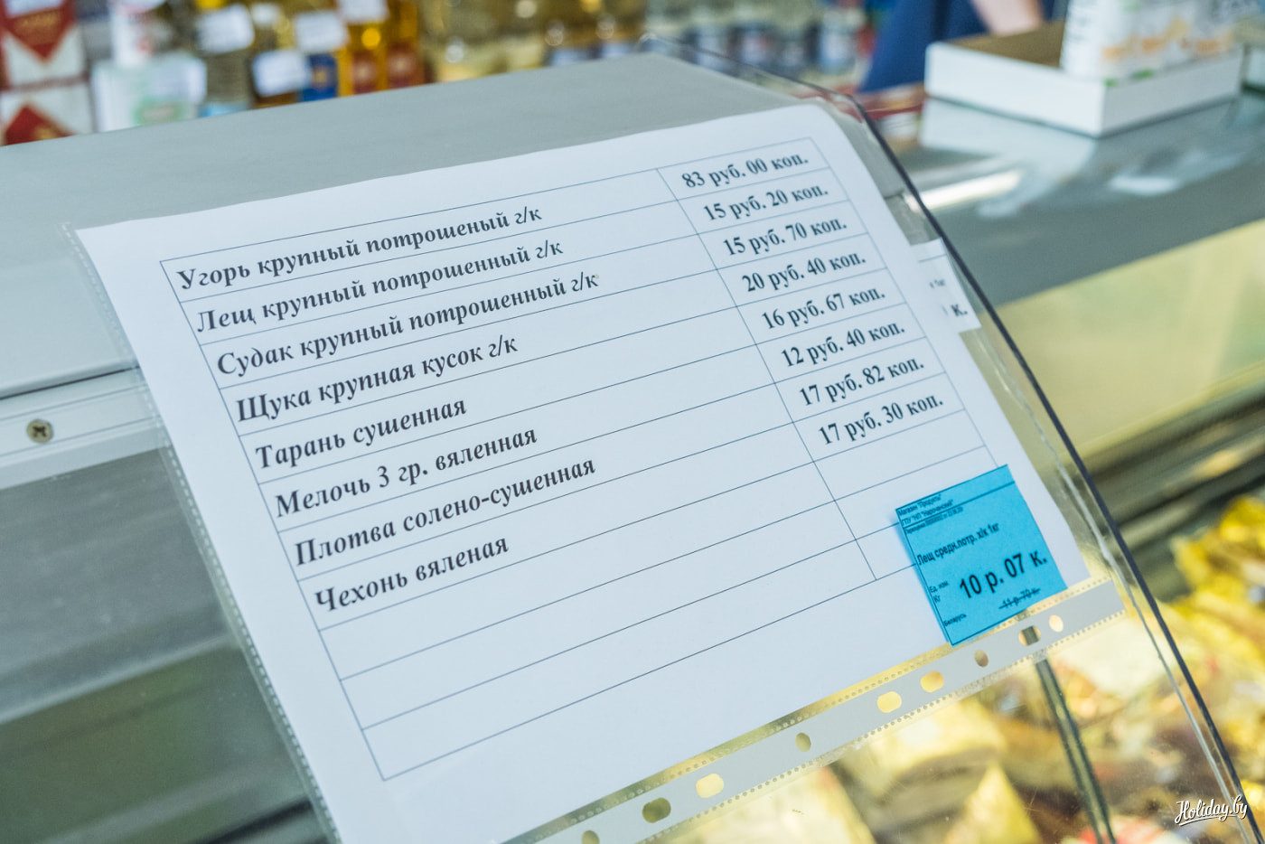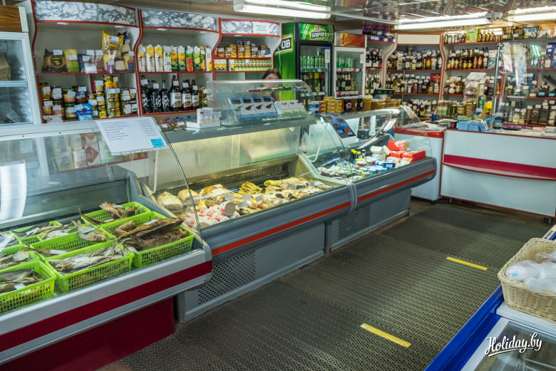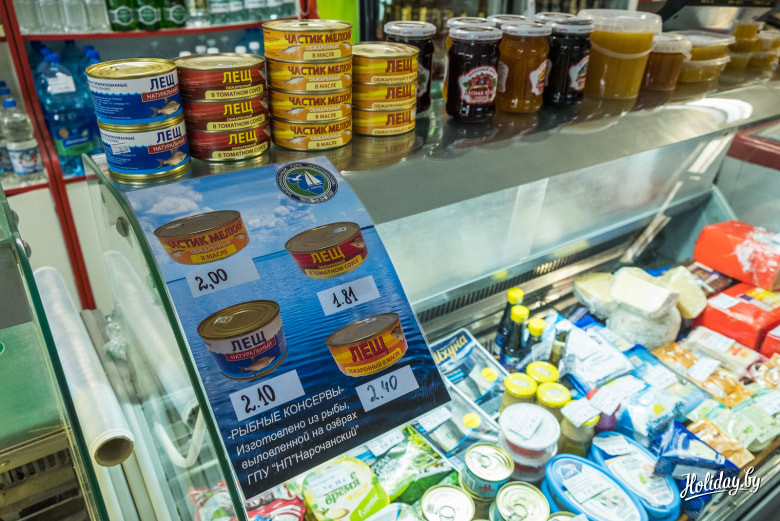Магазин «Нарочанская рыба» сразу настраивает на нужный лад. Надо помнить, что курорт находится на территории национального парка «Нарочанский» - а это отличный шанс попробовать местные продукты.