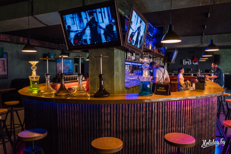 Пару раз проехав мимо, не смог не поужинать в огромном ресторане BBQ. Место в ожидании толп гостей – огромные площади, длиннющая барная стойка, кальянная зона и большая терраса.