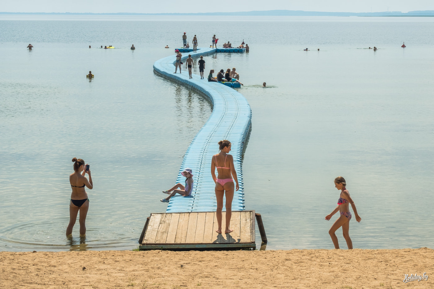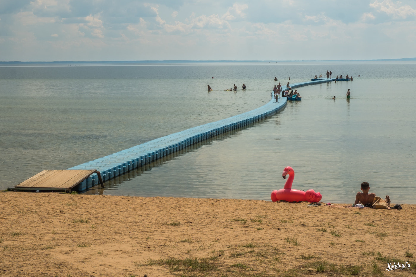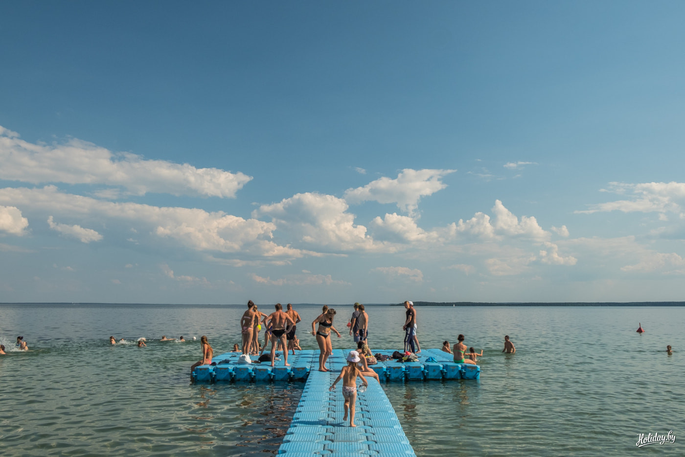 До курорта Нарочь всего 150 км от Минска, что составляет часа два движения на машине в комфортном скоростном режиме. Поэтому на наше «моречко» попасть самостоятельно не проблема. Есть несколько маршрутов, зависящих от того, с какой стороны будете объезжать Вилейское водохранилище. Если выехать в семь утра, то в десять уже можно сверкать пятками по одному из понтонов на пляжах.