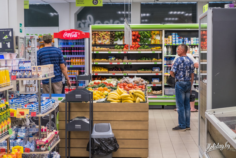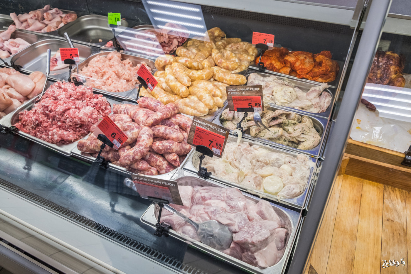 Ассортимент стандартен и знаком любому белорусскому горожанину. В пик летнего сезона стоит иметь ввиду, что можно столкнуться с очередями из отдыхающих, стоящих в кассы магазина. Тут можно найти готовые к приготовлению не замороженные шашлык и колбаски – большой плюс магазина.