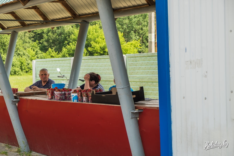Рядом с магазином «Нарочанская рыба» есть лавка-прицеп «Мясная классика» с полуфабрикатами. К тому же магазину примыкает стихийный мини-рынок, где можно купить ягоду с частных подворий.