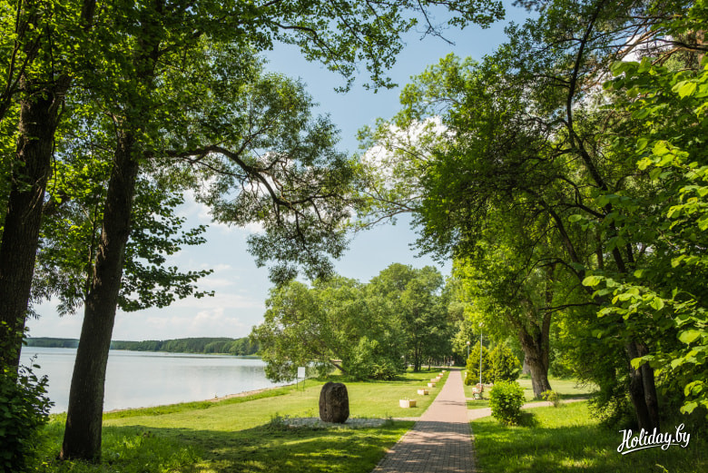 Надо сказать, что курорт Нарочь может похвастаться развитой системой дорожек для пеших прогулок. За это надо сказать санаториям, каждый из которых оборудовал свою часть территории. Есть также большая прогулочная дорога вдоль озера Нарочь. Уверен, что такие прогулки будут полезны, так как с первой минуты на курорте замечаешь, что воздух тут… вкусный, сосновый, густой. Поэтому если не хотите загружать голову информацией на экскурсиях и в музеях – просто гуляйте.