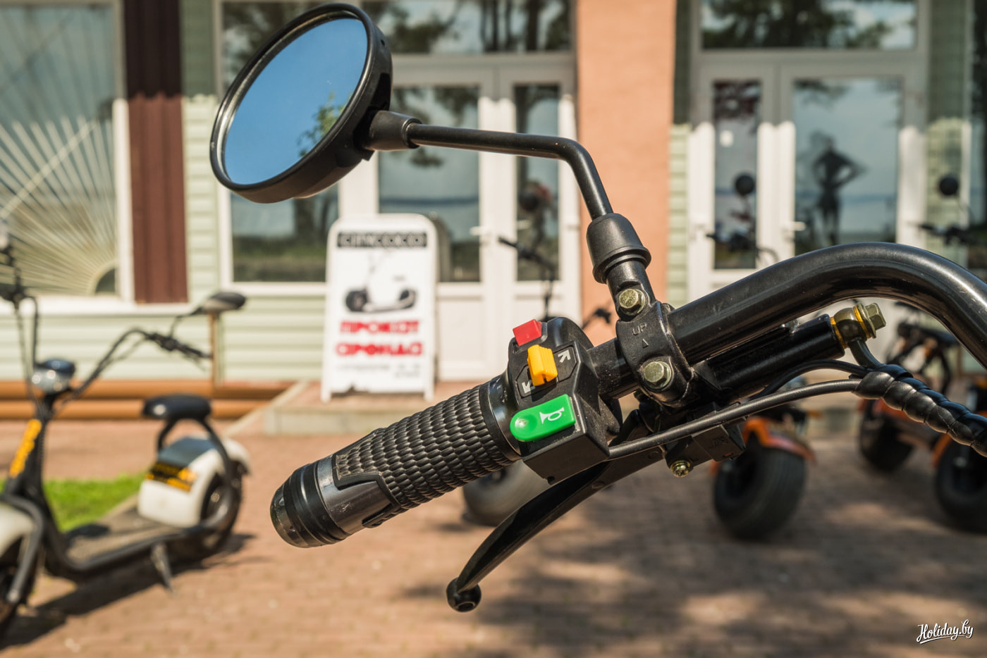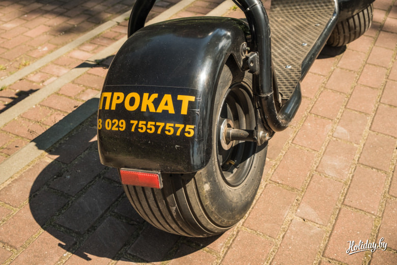 Недалеко от озера, примерно тут, как показано на карте, есть прокат CityCoco, где могут предложить электросамокаты по цене 25 BYN (примерно 10 USD) за час. Шлем выдаётся бесплатно к самокату.