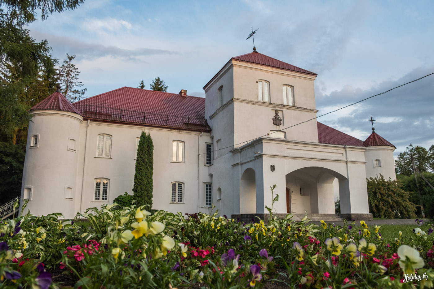 Вероятно, всё это можно было узнать и посмотреть сразу, но я очень спешил увидеть то, чего раньше никогда не видел. В соседней деревне Гайтюнишки находится уникальный для Беларуси памятник архитектуры. Говорю про дом-крепость архитектора Нонхарта.