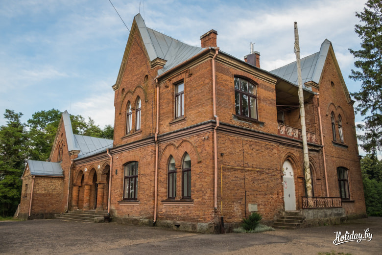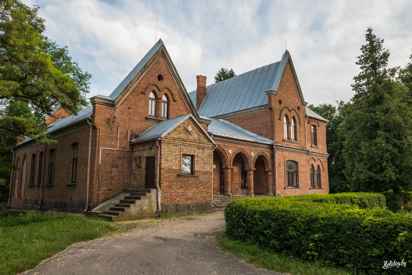 Начнём с того, что это неплохое место для пары-тройки фото в инстаграм на сотню лайков. Дом в стиле английской неоготики, датированный 1895 годом, сегодня занимает сельская администрация. Внутрь не попасть, но история говорит, что убранство дома когда-то было очень богатым.