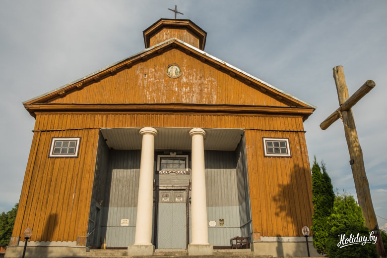 В деревне Жирмуны стоит интересный памятник эпох. Когда подходишь к костёлу Святого Креста, то в глаза бросаются сразу две детали. Во-первый, он деревянный с двумя огромными каменными колоннами. Во-вторых, на фасаде можно найти две таблички – на 150- и 200-летие костёла.