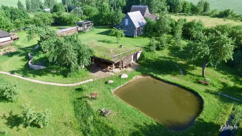 В 20 мин езды от Минска в сосновом лесу расположилась усадьба "Домики в лесу". Это настоящее воплощение истинного загородного отдыха. На территории находится 2 дома. Гостевой дом рассчитан на 2-3 человека. Это идеальное решение для двоих. Разместиться семьёй или компаний до 6 человек можно в большом доме с баней. Вся территория засажена мягким газоном, можно босиком гулять, играть в бадминтон, прыгать на батуте, безусловно, пожарить шашлычок на мангале, понежиться на солнце на террасе, охладиться в бассейне. Интерьер в домиках выполнен в деревянном национальном стиле, что очень воодушевляет. Когда вы достаточно отдохнули в усадьбе, можно потом отправиться на прогулку в лес, недалеко от дома находится озеро, где можно порыбачить и поплавать.